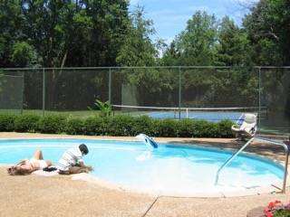 Rear yard ins fully fenced and private and has Inground Pool ( currently under repair) and tennis court..