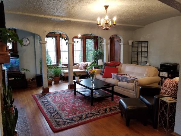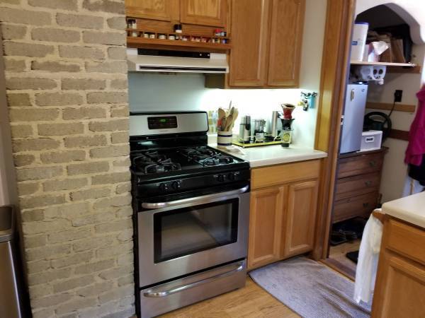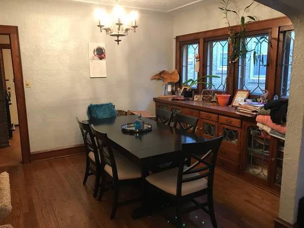 Beautiful 1200 square foot 2 bedroom/1 bath upper duplex unit. Nice kitchen and bath, formal dining room with built-ins, hardwood floors throughout. Includes central air conditioning, appliances, private deck, garage parking and shared laundry. Unfinished attic for storage included with this unit.