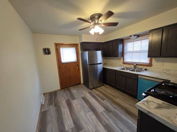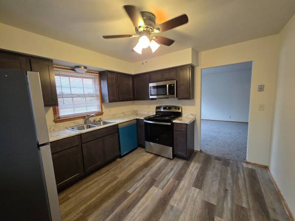 Very nice large three bedroom lower, 1 1/2 bathroom, Private side entrance to lower unit. Large UPDATED eat in kitchen, new slate cabinets & high resolution counter tops. Stainless Steel Refrigerator, Stove, Microwave, Dishwasher included. UPDATED tiled bathroom. Private entrance, nice patio off of kitchen. Large living room, three nice sized bedrooms, blinds on all windows. Hookups for washer/dryer, and storage locker in basement. Near Honey Creek park and Maple Grove school. Available for occupancy 12/1/25 or sooner. Rent $1595.00/mo. Two assigned parking spots right outside your door. Call show contact info