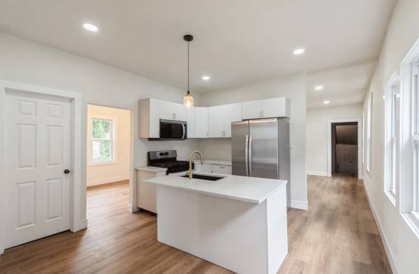 Step into this beautifully remodeled 2-bedroom, 1-bath Cape Cod that blends timeless charm with modern luxury. Nestled on a spacious double lot, this home has a brand-new roof (2025) and a fully fenced yard--perfect for outdoor living and entertaining. Inside, you'll find luxury vinyl plank flooring throughout, creating a seamless and stylish flow from room to room. The open-concept kitchen is a showstopper, featuring quartz countertops, never-before-used stainless steel appliances, and all-new light fixtures that add a touch of elegance to every space.