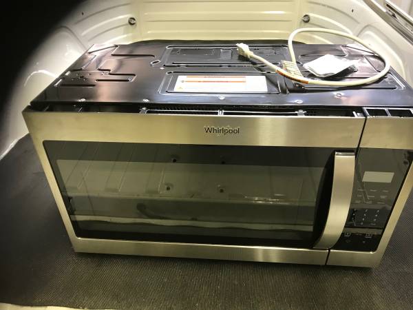 WHIRLPOOL OVER THE RANGE MICRO / EXHAUST FAN IN STAINLESS. LITTLE OVER 1 YEAR OLD. REPLACED DUE TO REMODEL WITH WHITE APPLIANCES. WORKS PERFECTLY.