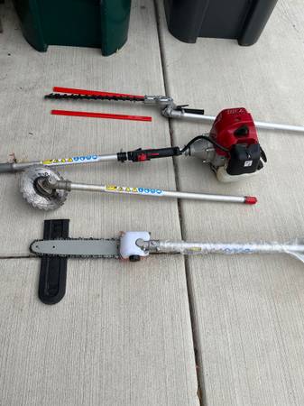 52cc 5in1 Hedge trimmer, extended chainsaw, grass trimmer 25:1 gasoline.