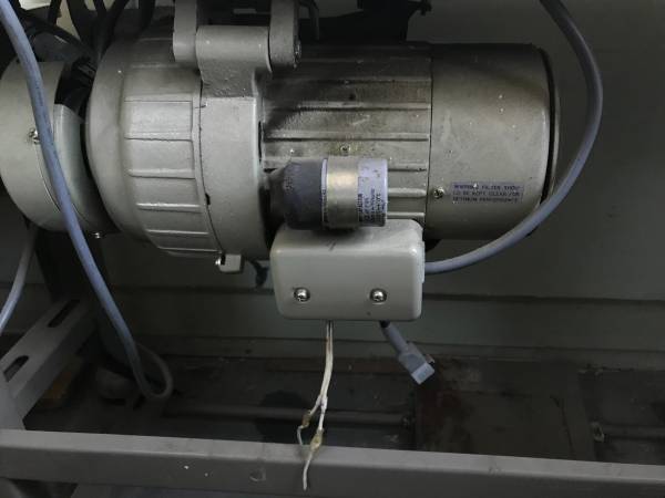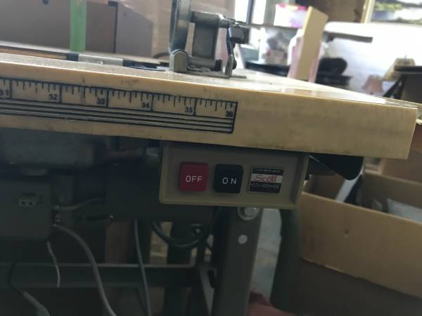 For sale is a sewing table with a motor included. The table has a cutout for a sewing machine to be installed into.