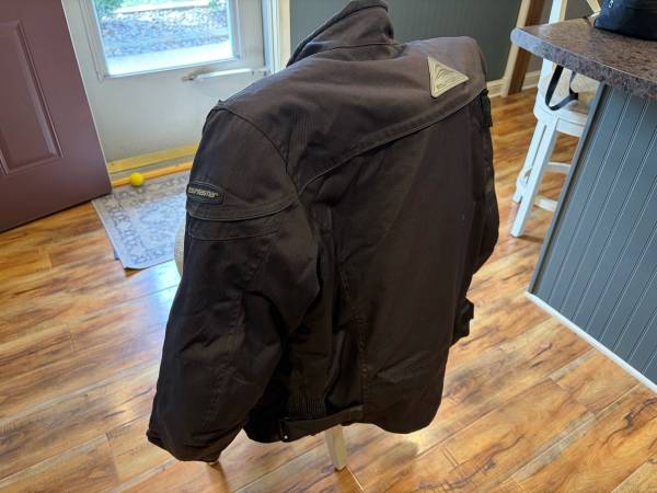 Men’s Medium Tourmaster motorcycle jacket. It’s in great shape. Has an inner liner that can be removed. It really does a great job of breaking the cold wind. Velcro straps at cuff so if you wear leather gloves you can cut off the wind from going up your sleeves. Big zipper tabs make zipping up easy and quick even with gloves on. Again it’s medium, I and 5’7 am 170 pds and it fits me just right. 9I3-669-33O4 Jack