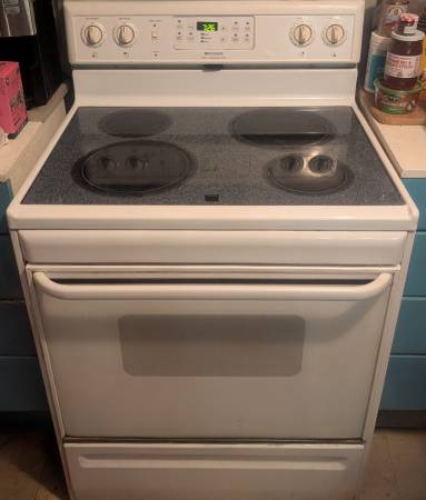 White electric stove with charcoal/black glass top. It has the self-cleaning option and a storage drawer underneath. It measures approximately 36"T x 29"W x 26"D. It works great and I just replaced the oven bulb last week but I need to make room for some new freezers. It comes with the electric cord as well. Pickup is in Waukesha from my smoke free home. Cash, Venmo or PayPal only.