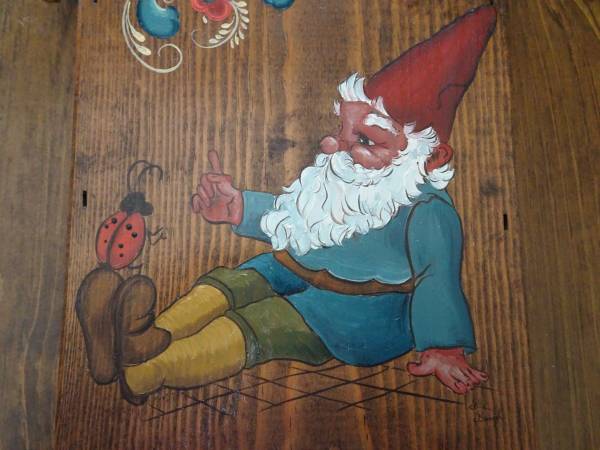 GNOME AND LADYBUG - HAND PAINTED WOODEN SLED - arts & crafts - by...