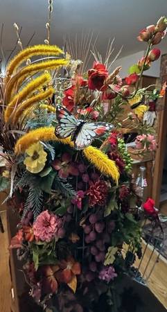 Beautifully designed and hand crafted antique bird cage flower arrangement made with artificial flowers. It is finished on all sides making it viewable 360 degrees, stands 37" tall, 26 inches wide and 16 inches deep. A one-of-a kind exquisite flower arrangement that will generate a ton of compliments ! For your company entrance, home , office or wedding venue ! All sales are exact cash at the Cedarburg Police Station.