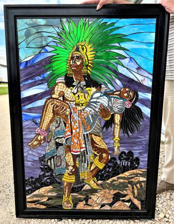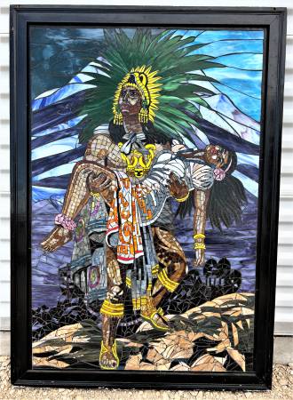 Khaim Pinkhasik Stained Glass Mosaic Aztec Warrior Window