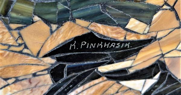 Khaim Pinkhasik is a world-renowned glass-mosaic artist that produced museum-quality masterpieces. As a young boy of 5, in his hometown of Minsk, Russia, Pinkhasik began his interest in mosaic art when a post WWII German soldier traded a small mosaic made from broken glass for a loaf of bread. He loved it so much, he soon began making his own small mosaics. As he grew older, Pinkhasik began to work for the leaders of the former Soviet Union, creating 29 mosaic walls for government buildings and museums featuring Lenin & Stalin. His mosaics were well received by the Soviet Union and their beauty and life-like detail lead to a teaching post at the prestigious Art Institute of Minsk. In 1980, forty years after his birth, Khaim brought his talented hands and creative vision to the United States. He settled in the Chicago area in 1982, where he operates a very unique gallery.Known to his many collectors as the "Glassmaster", Pinkhasik begins each museum quality glass masterpiece with a detailed hand drawing. Next, he hand selects, cuts, shapes and sands each piece of glass to be contained in his mosaic. Then he attaches each cut of glass to a clear sheet of glass with a permanent adhesive. He uses no lead, therefore there are no seams. This process, developed by Pinkhasik, creates a translucent masterpiece so bright and vibrant, it takes on a life of it's own !! Imagine the hours and hours of time the "Glassmaster" has spent creating these masterpieces. And no two pieces are exactly alike, making this a unique one-of-a-kind creation, containing hundreds or thousands of cuts of glass. Artwork of this quality spans generations.Pinkhasik draws inspiration from masters such as Renoir, Erte, and Monet, as well as Russian folk tales passed down from his grandmother. His portraits are truly stunning! He was honored when commissioned to create a glass mosaic portrait of former President George Bush and first lady Barbara; as well as former Illinois Secretary of State, now Governor George Ryan. He has been commissioned to created custom made portraits of Frank Sinatra, The Three Stooges, Dennis Rodman, Kenny Rogers, and the Blues Brothers. Several Pinkhasik masterpieces are part of the permanent collection and display at the "Smith Museum of Stained Glass Windows" at Chicago's Navy Pier. Each piece is signed by the artist. I had heard that he had passed away not long ago.