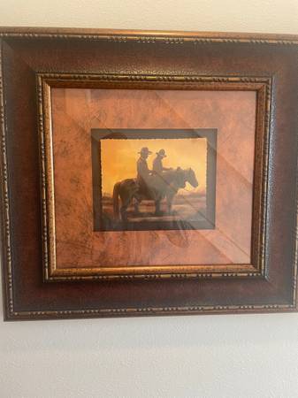 2 matching cowboy pictures with intricate frames. $75 each obo