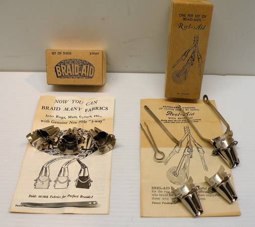 Braid-Aid Cones 3 Way - $15.00 Reel- Aid Braid-Aids Bailey Crafts - $20.00 Rigby Clamp South Portland, Maine - $35.00