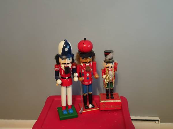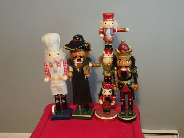 For Sale A collection of 11 nutcrackers. Various sizes and costumes including a pirate, skier, drummer and fisherman Asking $75.00/offer.