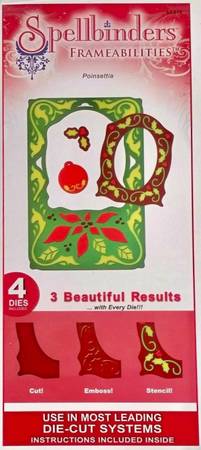 set of 4 Spellbinders Frameabilities cut/emboss/stencil Poinsettia dies S5-018; may be used in many brands of manual die cutting and embossing machines to cut shapes, emboss detail into die cut...