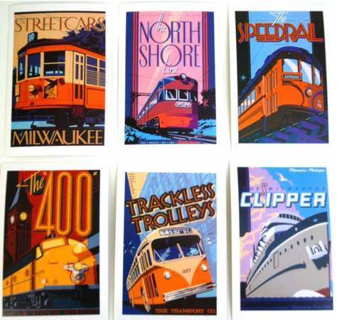 The Streetcar, Muskego Beach,White Tower, Wisconsin ave Viaduct,Telenews, Marquette,The Nash, trackless trolly, Speedrail, Olympian Hiawatha, and Wisconsin Central airlines.