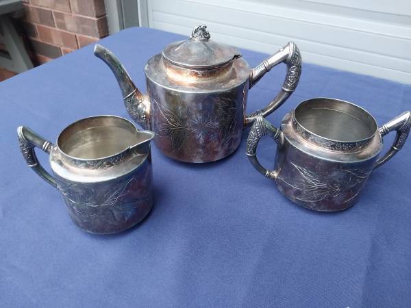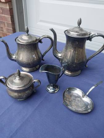 Vintage tea set with 2 teapots sugar, creaner and heart shaped treat plate.