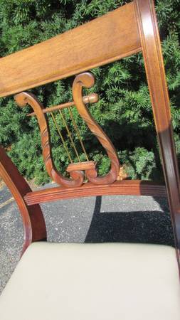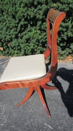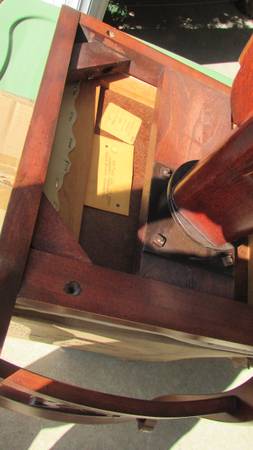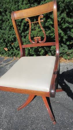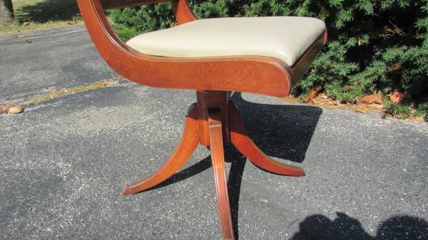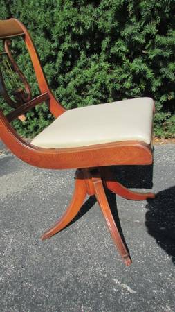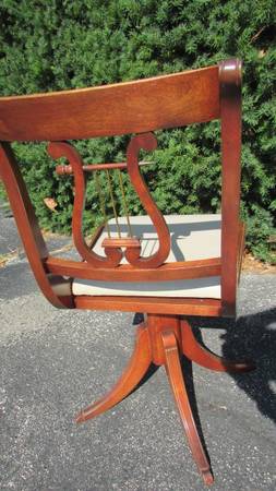 Antique Harp Chair manufactured by Charlotte Chair Co., Charlotte, Mi. Probably special ordered by Milwaukee Boston Store, Milw. Order # 601. (see original tag) Mid-century Walnut music chair.