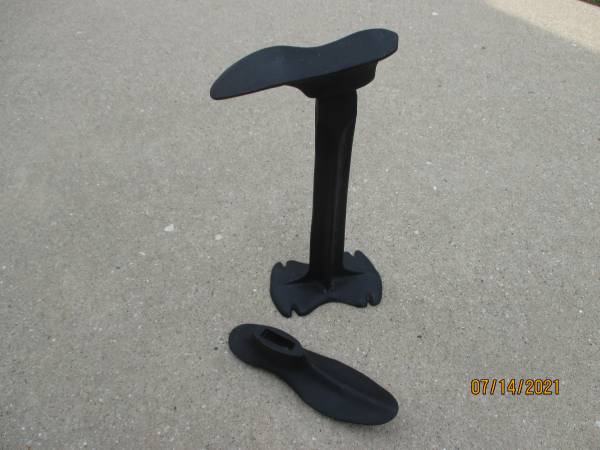 Antique cast iron cobbler stand with 2 shoe forms. Stand 13 1/2" Tall. Shoe form 7" and 9 1/4". Good condition. $20.00 Cash Only