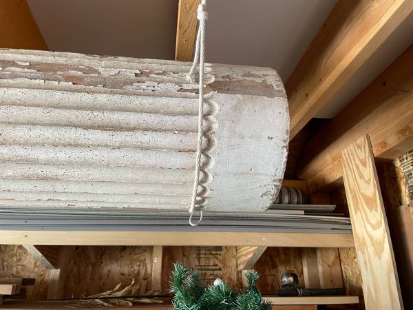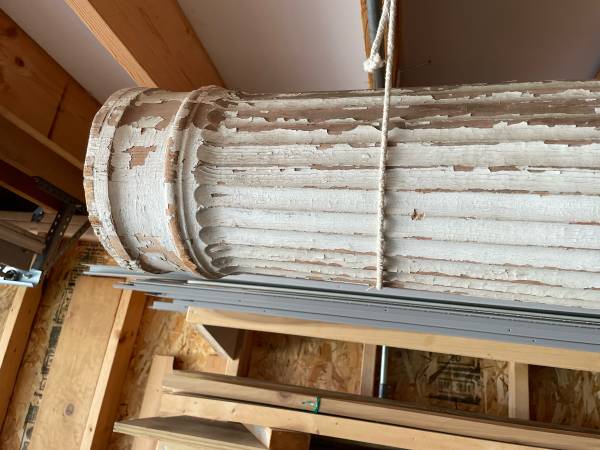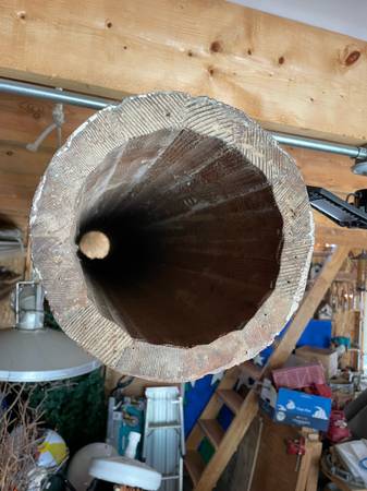 Antique fluted wooden column. 9’-6 1/2” tall, 11 1/2” diameter at base, tapers to 9 3/4” dia. at top. Cool accent piece for a large house. $75.00