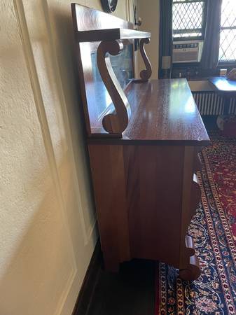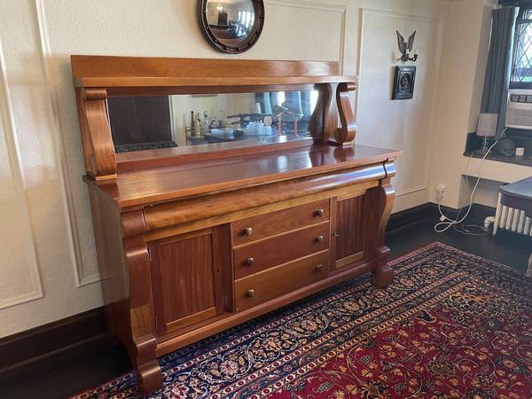This beautiful mahogany sideboard was made for a prominent family in New York in the 1900. It is in great condition except for a small blemish on one side, see picture. Worth a lot more than this, but I do not have room for it in my house. I will miss it very much. Pick up only.