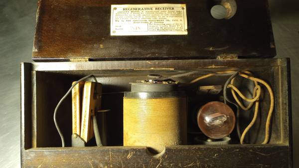 Regenerative radio reciever. Requires separate power supply or batteries.