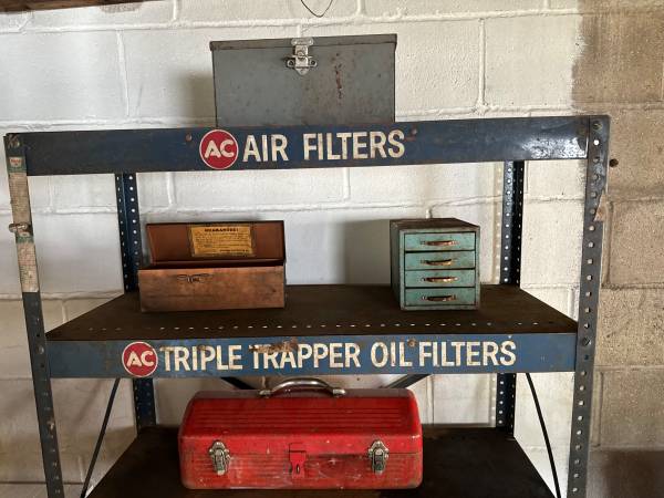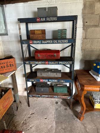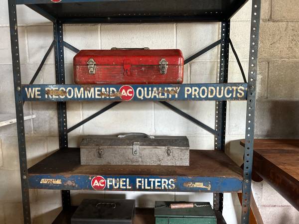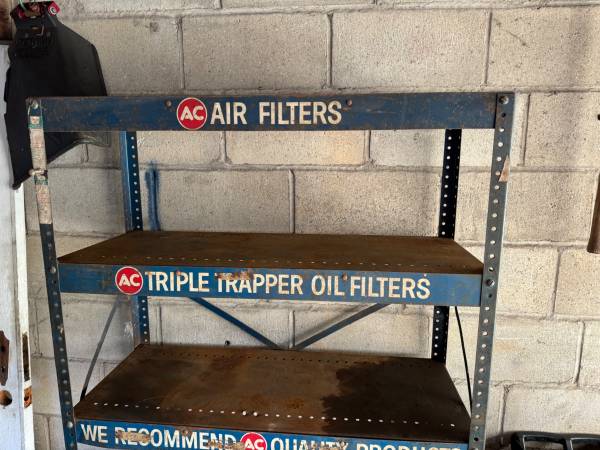 Vintage AC metal store display, mechanics shelf *PATINA* - antiques...