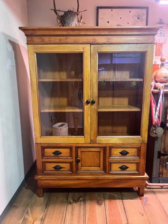 1890’s Curio Cabinet / Storage Cabinet. HandCrafted. Dove tail joints no screws all wood pinned construction. beautiful piece. purchased from farmland estate sale in Door County, WI. if interested please share your number so we can text for arraignments to pick up. Thank You! Erik