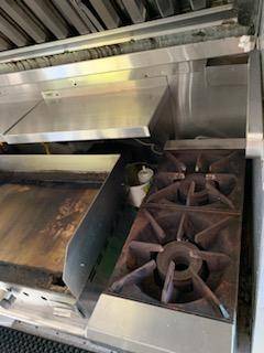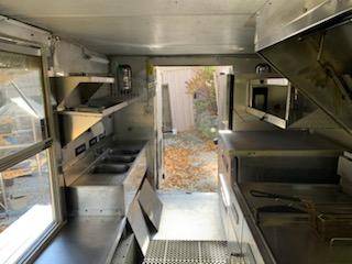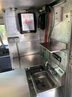 KITCHEN FEATURES AND EQUIPMENT: Complete Water System (3-bay ware washing sink, handwashing station with sink, hand towel dispenser and soap dispenser; 2.7-gallon Bosch water heater; water pump; 30-gallon freshwater tank; 40-gallon grey water tank)