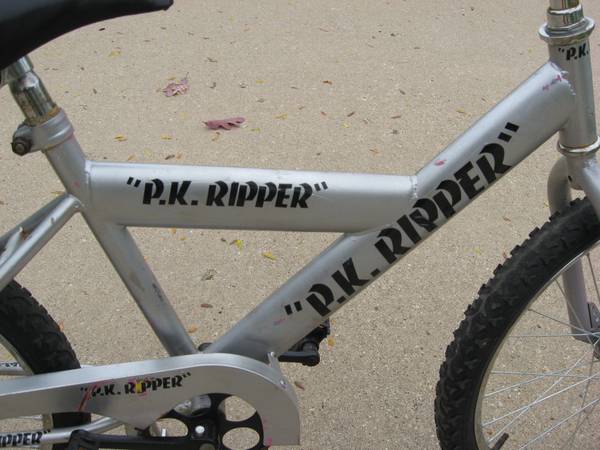 no brand label (pk ripper stickers all over) single speed coaster brake 14" frame 21" stand over height 20" wheels rims run true all tuned up and ready to ride call Jim @ two 6 two-782 six 504