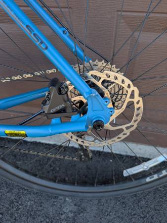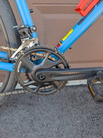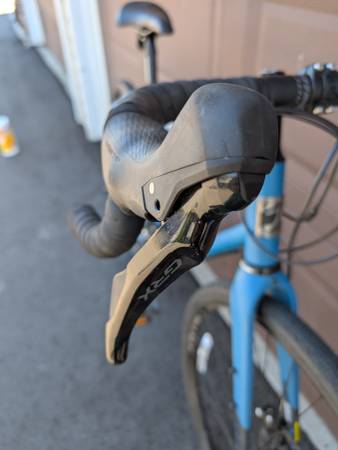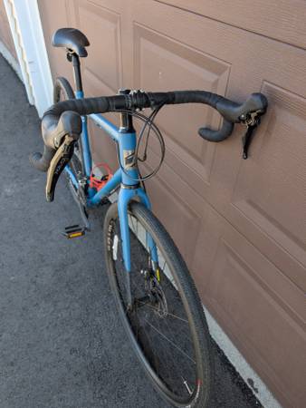 Reynolds 520 frame with a carbon fork. Plenty of braze ons for racks and packs. 2x11 Shimano GRX drivetrain. Hydraulic disc brakes. 700x36 gravel tires (plenty of room to go wider). Frame accommodates up to 50s.