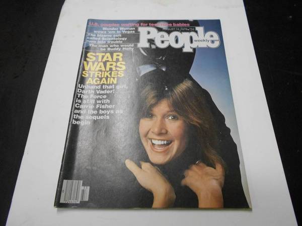 This is an original, vintage copy of PEOPLE Magazine from August 14, 1978 with cover featuring Carrie Fisher and Darth Vader. Magazine is in near mint condition. This is a 1 owner bought at a newstand and stored ever since. Loaded with photos of stars Carrie Fisher, Mark Hamill, Harrison Ford and David Prowse. Lynda Carter, Mick Jagger and Gary Busey is also in the mag.