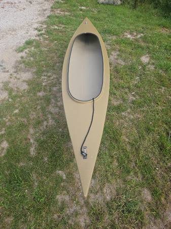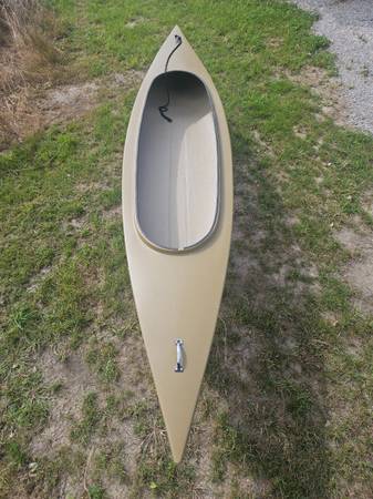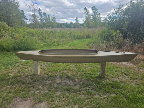 Muddy Waters "Bluebill" fiberglass Duck Skiff. Just under 14' and about 70#. Push/paddles straight and fast! Ideal for 2 hunters or 1 hunter/1 dog and gear. Real nice skiff to hunt out of, hides...