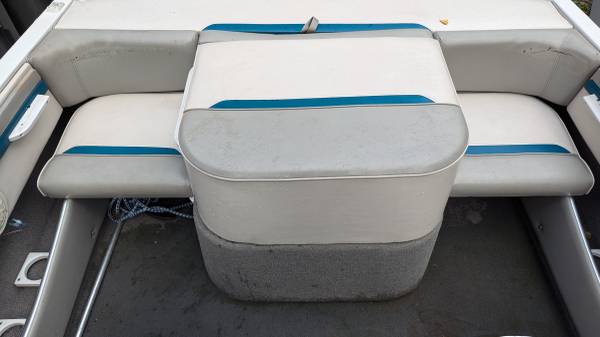 Boat runs and drives well seats are torn as in the picture the trailer is in good condition ready togo carpet is newer but has some staining the motor is a omc cobra 3.0 boat is great for sking and tubing selling because we don't use anymore kids have grown up radio works remember the boat it is not brand new so it is not perfect