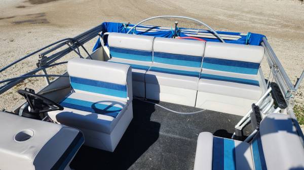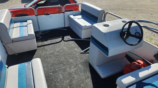 This 1985 Landau Castaway pontoon was meticulously renovated in 2010. In 2010, floor boards, carpeting, and vinyl seating was reinstalled new. 2006 Evinrude motor. Professionally maintained on annual basis. Does not require unleaded, gas and oil mixing.