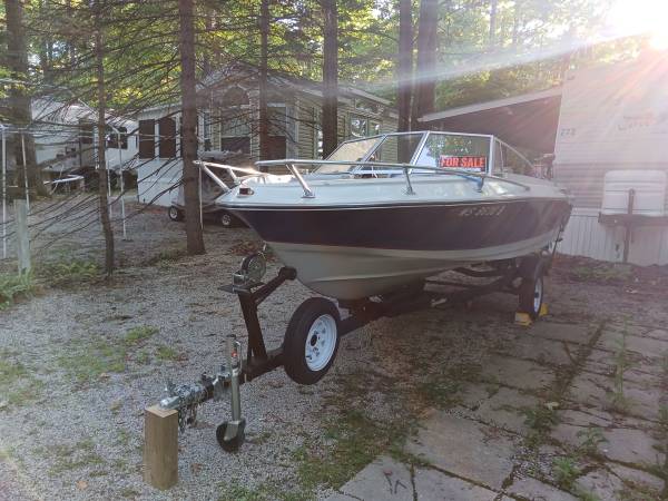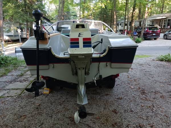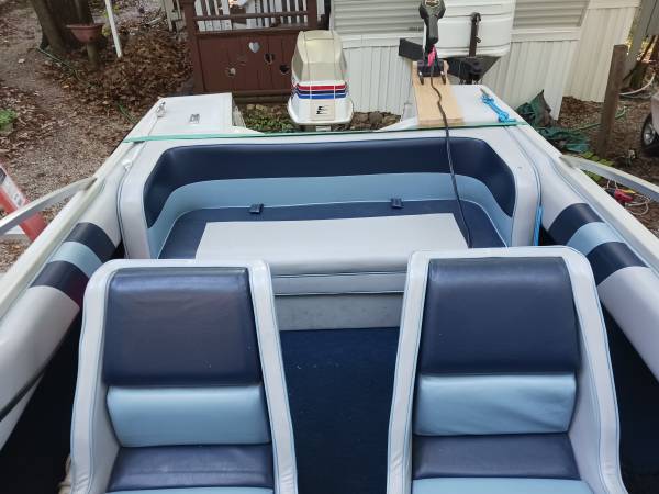 Runs great, 70hp motor -goes 50 mph, great for fishing, or towing 2 waterskiers, or a super size tube. Seats and interior replaced from a Four Winns boat. New carpet. Fish locator and troll motor. New AM/FM Stereo and speakers. Battery chargers. Extra propeller. Boat cover. Boat trailer refurbished - sandblasted and painted, new lights and wiring, new rollers, new winch, new tongue, new roller wheel, new tires. Phone: show contact info