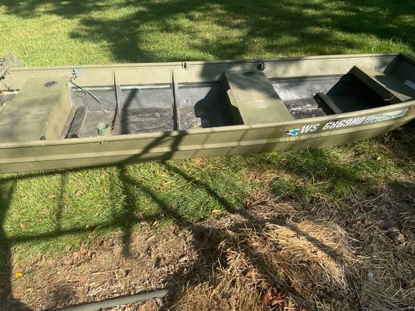12’ JONBOAT ,WHEELS AND 2 seats ,anchor