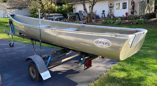 Vintage / Classic Herter's Official Guide Boat, 14 ft. Fiberglass. No motor, no cover. Vintage trailer needs some TLC. Located in the Village of Pewaukee. Cash only. Item is still available, if ad...