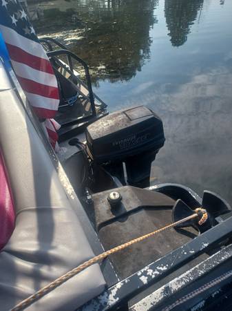 It's not a speedster by any means. It has a 40hp Evinrude Traker outboard. But is great for tooddling around.