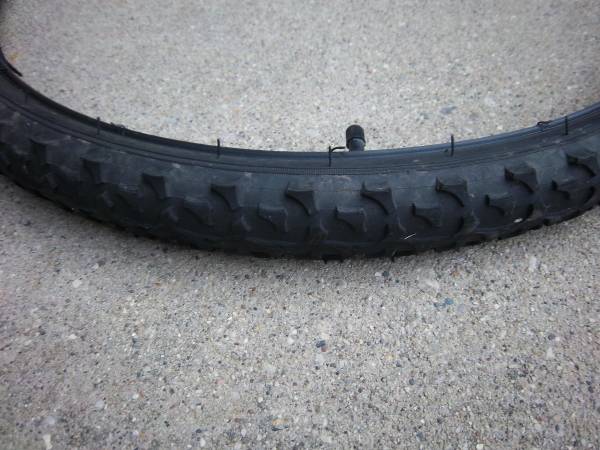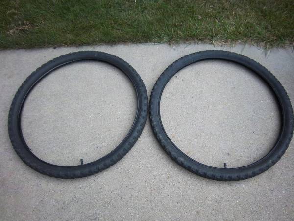 26" tire and inner tube. 26" x 1.95 wide. They hold air, lots of tread left on these low miles tires. $6 each or both for $10.