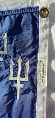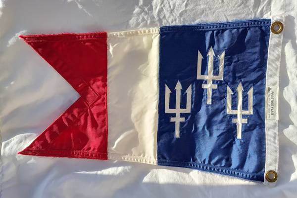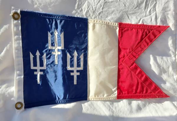 Three trident boat burgee. Measures 13" x 18". Looks new. Great nautical decor or use it on your boat.
