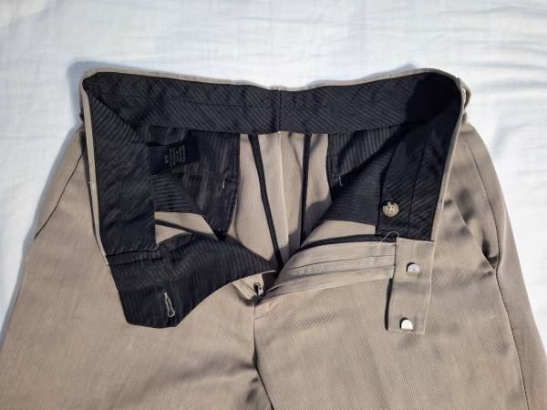 Axist brand men's dress pants. Black ones are missing 2nd clasp for waist flap. Khakis have what appears to be an iron burn. 100% polyester. Located near Packard Ave. and Holmes Ave. in Cudahy....