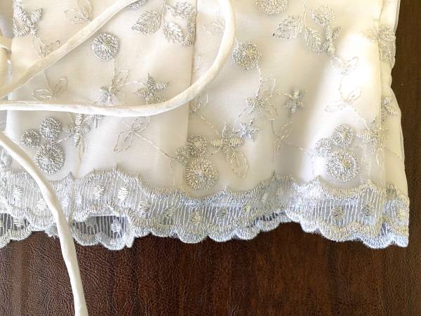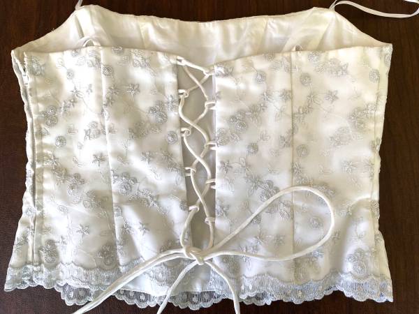 The skirt is 3 layers with the iridescent top layer and corset sparkling beautifully. (Will re-take photos.)