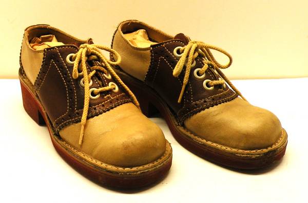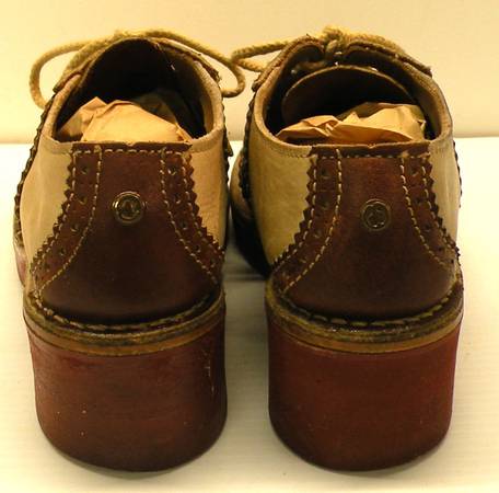 1960's Tacks by BASS / Brown and Beige Saddle Shoes Size 6.5 - 7 / 2" Heel