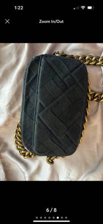 A beautiful cross body bag, with gray black denim, the style and gold chain adds a special look on simple outfits