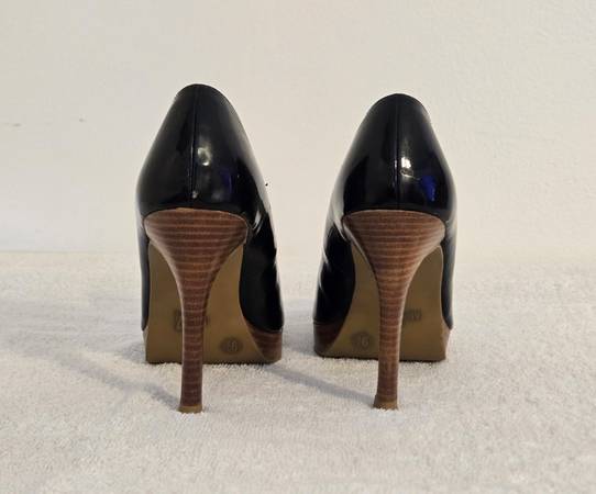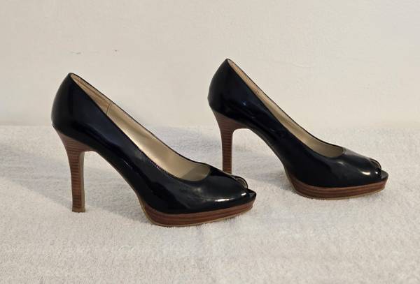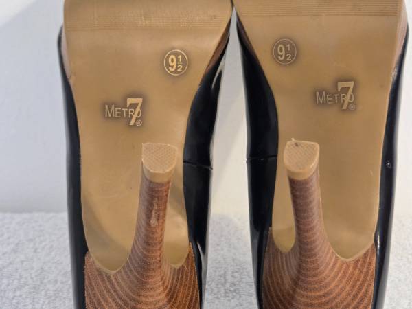 Metro 7 Black Patent Leather Peep Toe High Heels