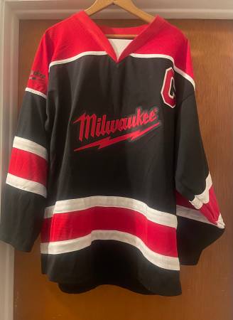 Really nice unworn Milwaukee Tools hockey jersey, size adult large.