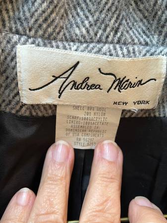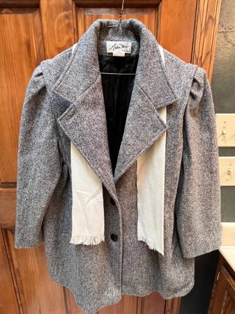 For sale is a gently used Andrea Marin women’s wool-blend coat. This beautiful wool-blend coat will pull your whole look together in an instant. Little details like shoulder pads, a full lining and matching scarf create a gorgeous style that will look good season after season. Roomy sleeves work together to create a lovely fit.