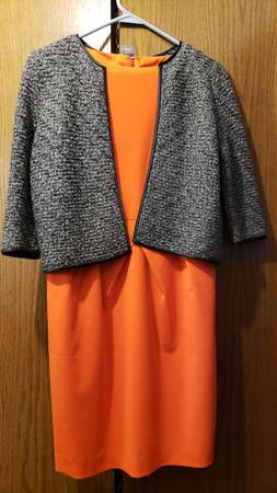 2. The orange dress is 100% merino wool, size is 2p. The dress is lined.