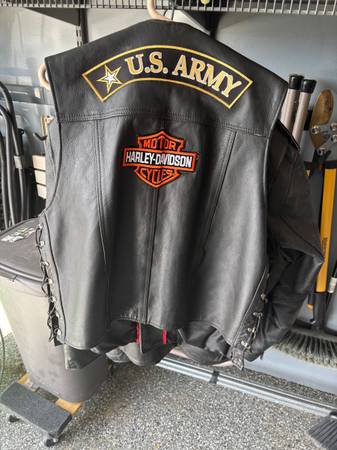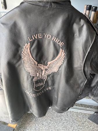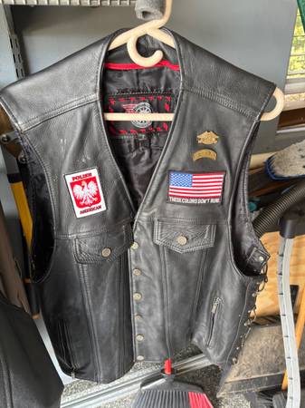 Leather riding jacket, good condition, leather vest good condition, size 2XL, $60 both