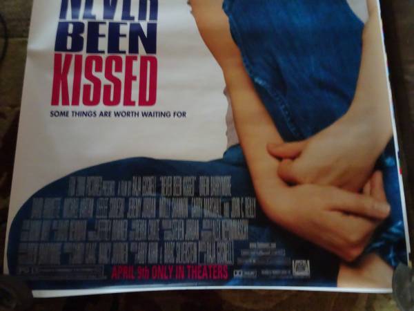An Original Movie Theater Banner NEVER BEEN KISSED Very Good Condition Has pin holes in corners from hanging - no other rips Paper Banner Double Sided Approx. 70 inches x 48 inches Released in...