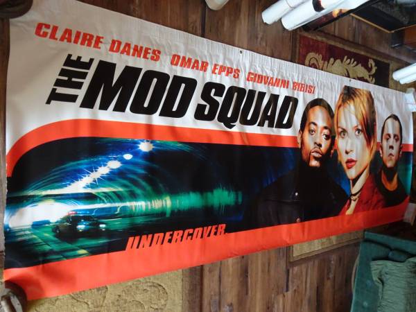 Original Movie Theater Banner THE MOD SQUAD UNDERCOVER WITH CLAIRE DANES, OMAR EPPS & GIOVANNI RIBISI Condition is used There are 4 grommet holes on top edge Vinyl Banner Approx. 125” x 46”...